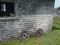 | Title: Wagon wheelsLocation: Whale Cove:Number: Source: DCP Staff Notes: These are antique wagon wheels owned by Stephen Kuzma who spends his summers in Whale Cove. |