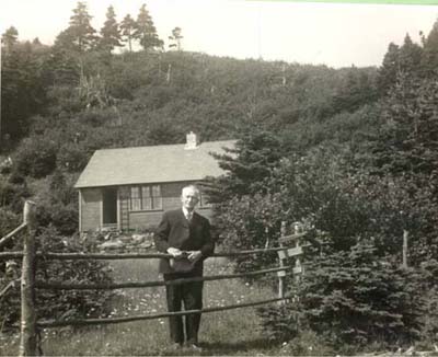 Mount Shubel Cottage - 010f.Image.jpg - Mt.Shubel cottage with the builder in front, Balfour Specht of Barton, the summer home of Mr.&Mrs.Wyman Bristol of Philadelphia. The cottage was built in 1940(photo taken around same time) and from that time forward Mr.Bristol (teacher&photographer) took many splendid photos of Sandy Cove until about 1960.