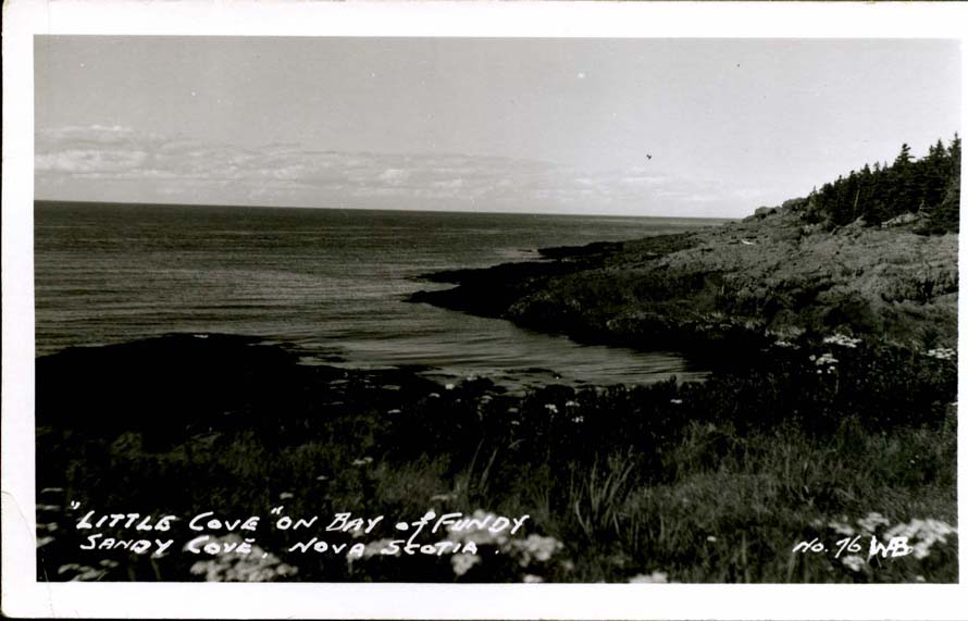 Location:Sandy Cove Number: Source: Elizabeth McCullough Notes: "Little Cove" on the Bay of Fundy side of sandy cove. Probably taken in the fifies and was No.76 of the Wyman Bristol Collection