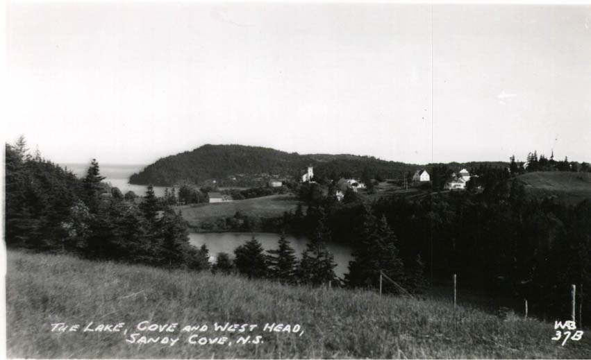 Location:Sandy Cove Number: Source: Elizabeth McCullough Notes: Nice view encompassing the Sandy Cove Lake (or Pond), West Head and the cove itself. Bristol series #37B