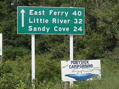 Notes: Road sign for Moby Dick Campground.
