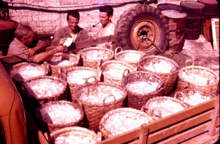 Location:Other Number:113 Source: Eldridge Memorial Library Notes: herring scales paying Paul Gidney (16 BU=800lbs)-Killam Noah and Rick Gidney with pipe.