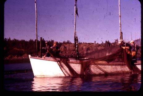 Notes: Putting out pursing net at Percy's weir.