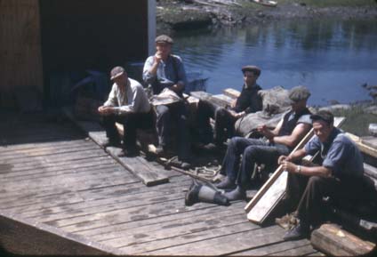 Notes: Several men sitting on the wharf